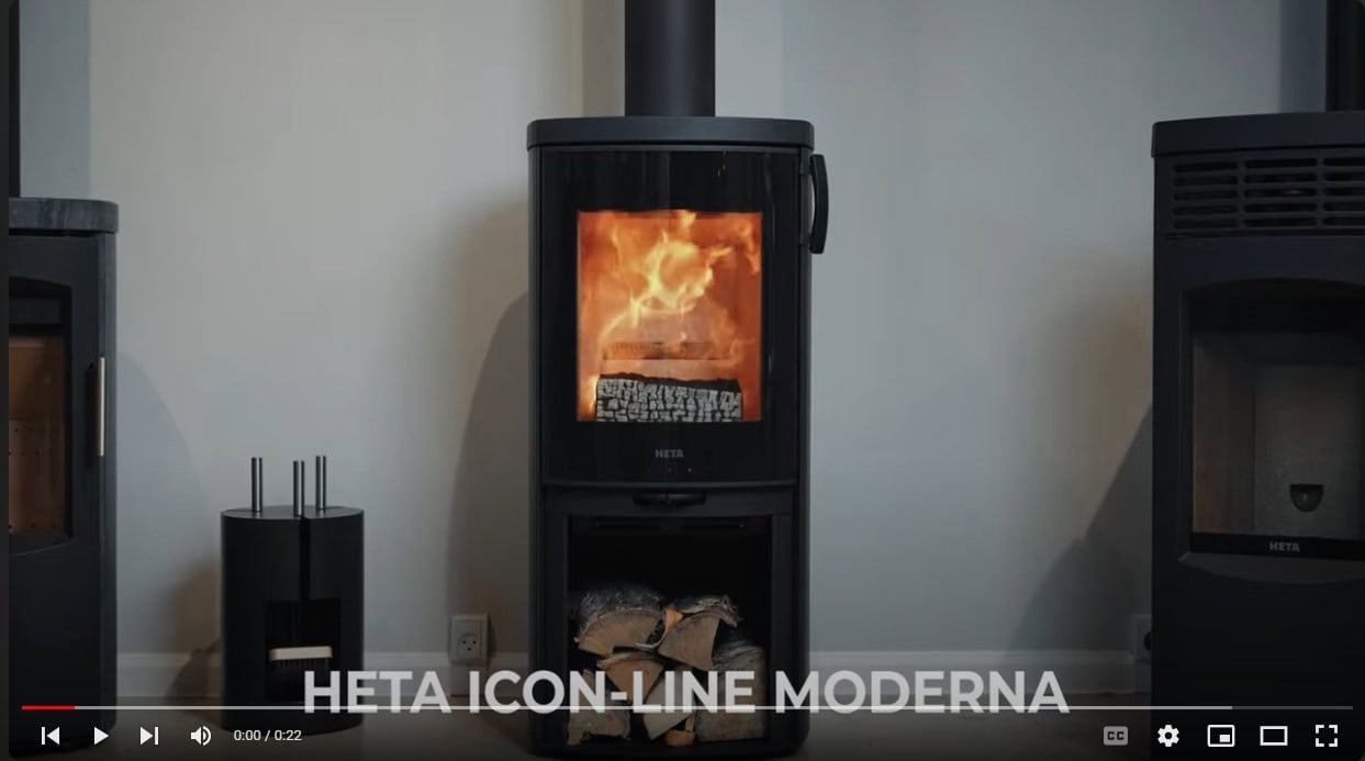 Icon-Line Moderna har en fin glasfront och kan väljas både med och utan underlukcka. Kaminen finns i svart eller grått, färgerna gör att kaminen passar i varje vardagsrum och bidrar med mysig och varm stämning. Det går att välja mellan stål och täljsten i båda färgvarianterna.